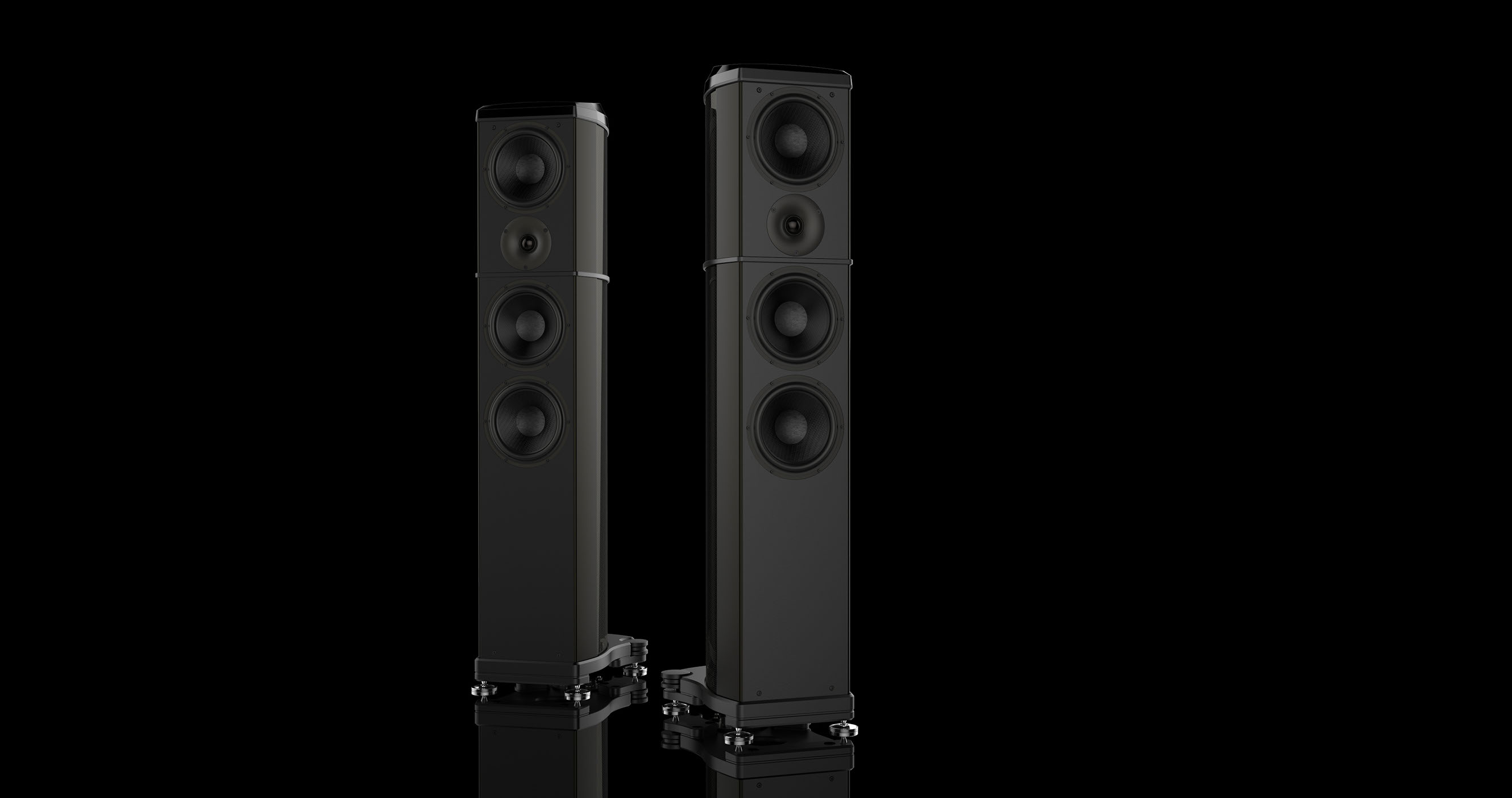 | FINISHES | Black anodised baffle Satin black spines, foot, division plates High gloss black top High gloss satin weave carbon fibre cabinet Bespoke side cheek options |
